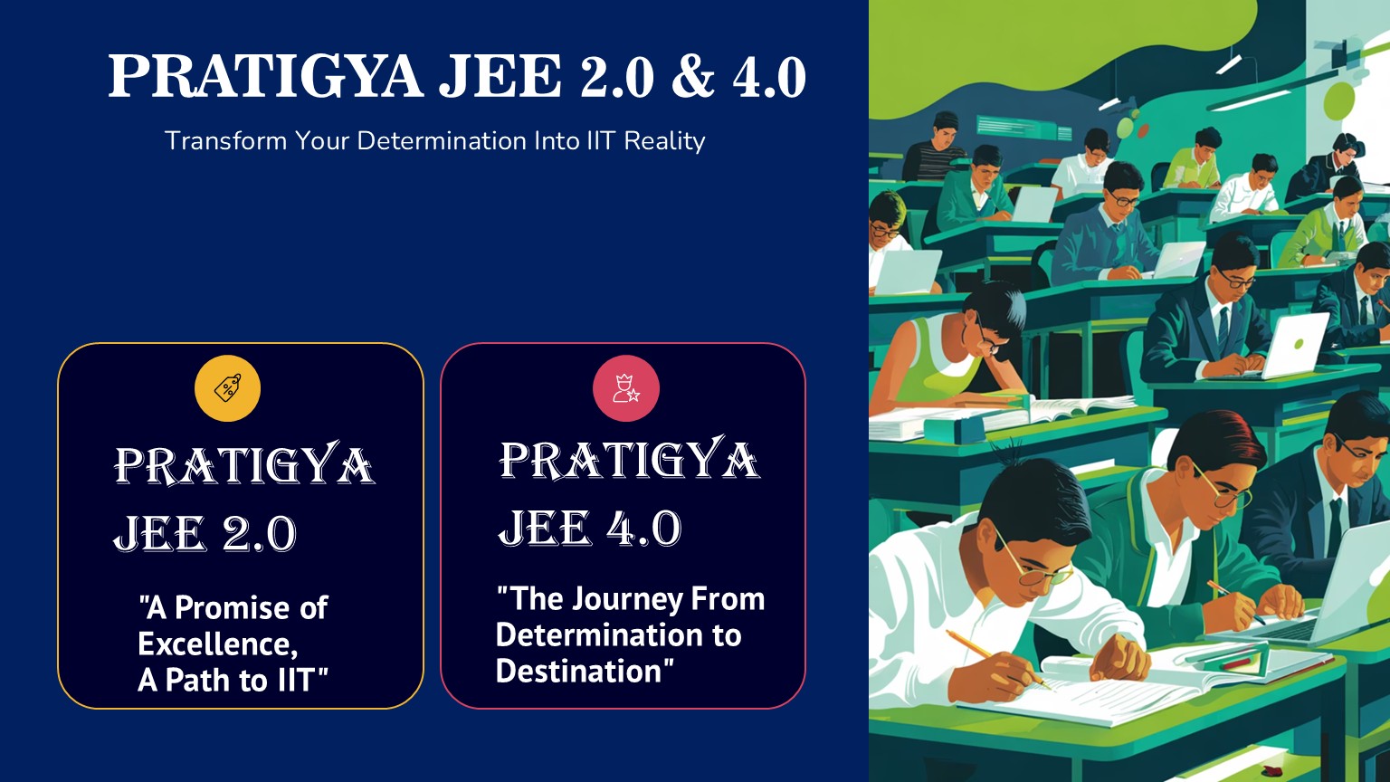 🔰 Feature | ⚙️ PRATIGYA JEE 2.0 “A PROMISE OF EXCELLENCE, A PATH TO IIT.” (For Class 12th Appearing / Droppers) | ⚙️ PRATIGYA JEE 4.0 “THE JOURNEY FROM DETERMINATION TO DESTINATION.” (For Class 12th Appearing / Droppers) |